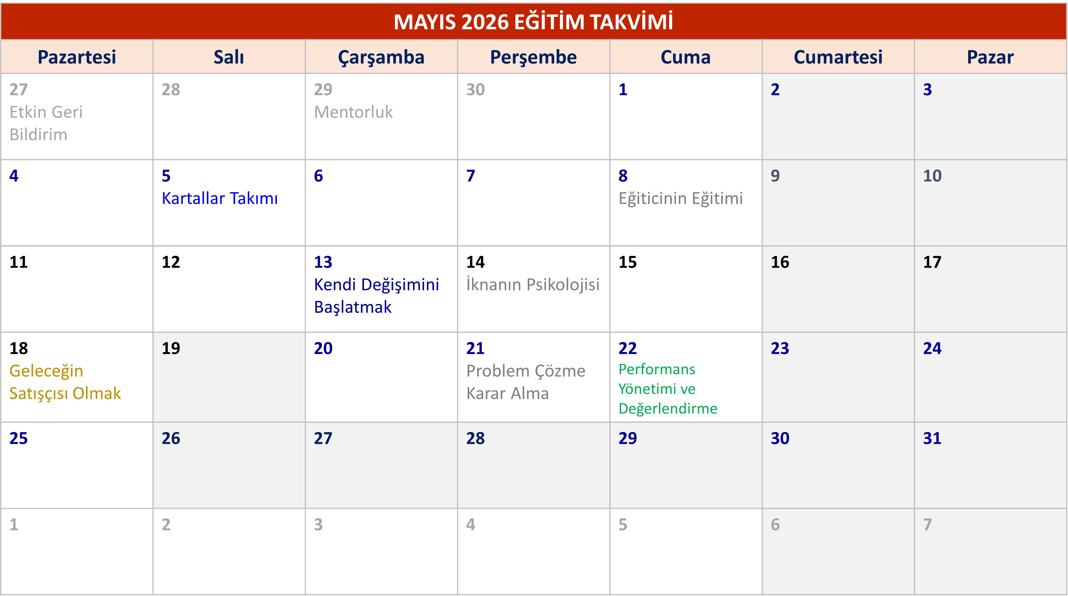 - Eğitim takvimimizde günlerinizi planlayın