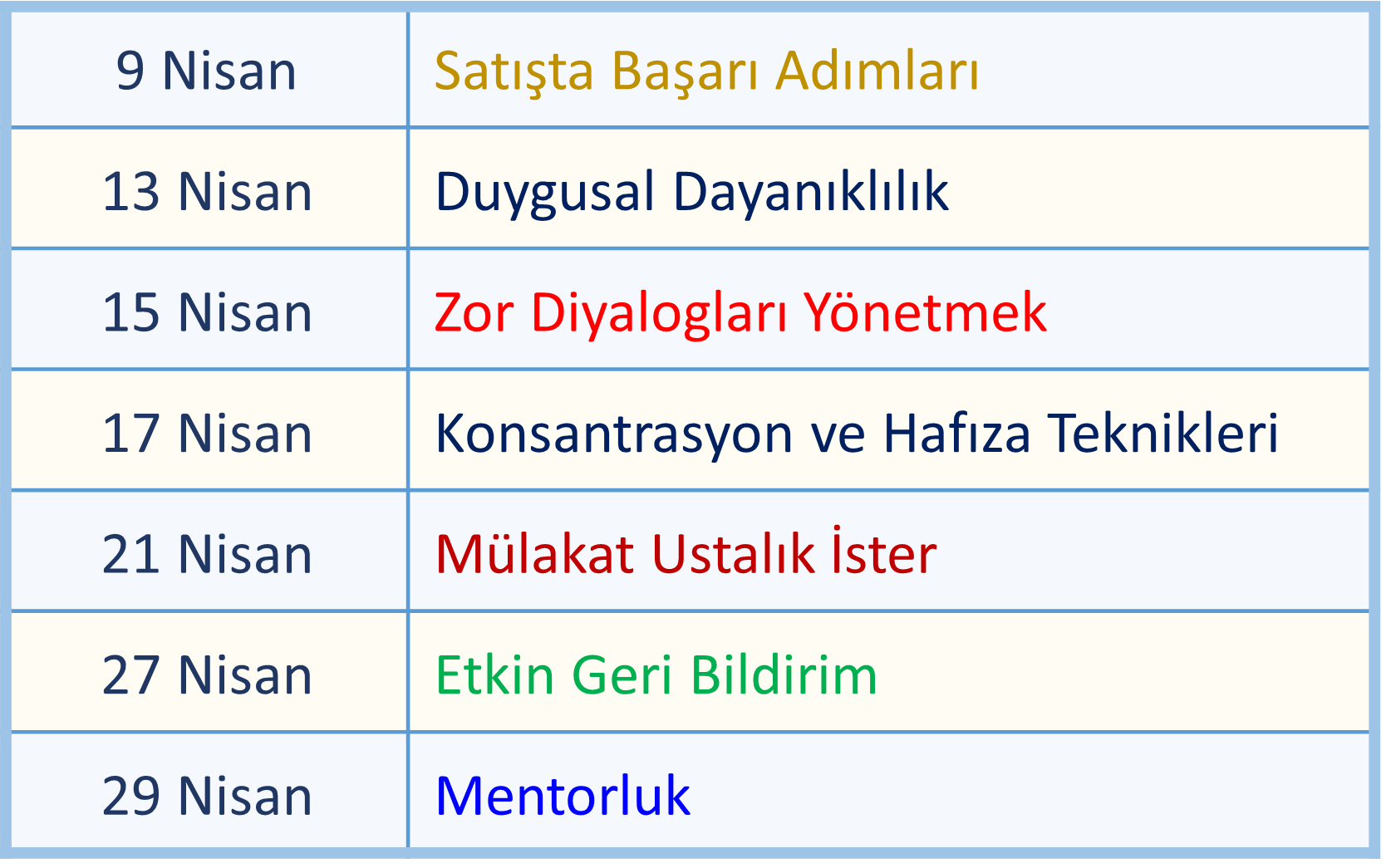 Kişisel Gelişim EğitimleriHer eğitimin süresi 1 gün